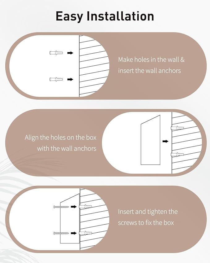 - Ultra-convenient Design: Greatly optimized connection between the top cover and the back plate. Use flexible piano hinge instead of common screws. You can install it tightly against the wall and open the cover completely without hitting the surface
