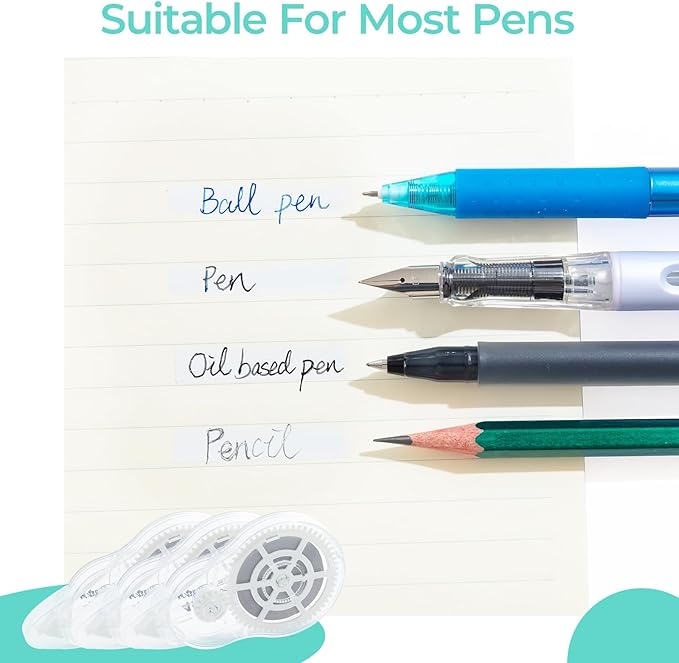 - Smooth & Seamless Correction: Precision roller glides smoothly, covering mistakes evenly without residue. Works on notebooks, exam papers, and different pens.