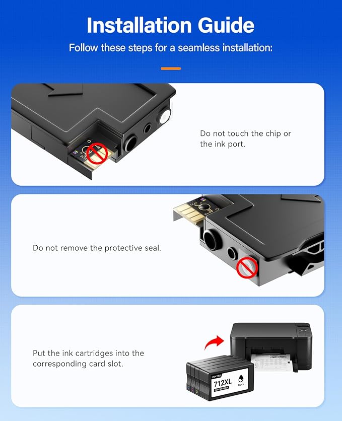 - 【High Quality】712XL Ink Cartridges with chip can be instantly identifed by your printers and work perfectly, making daily documents, reports, letters, graphics and photos very clear and bright.