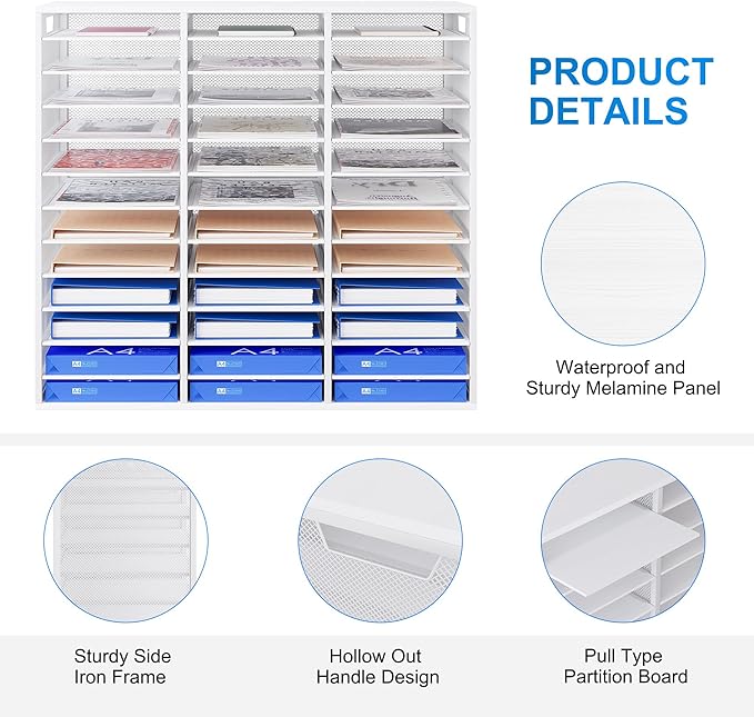 - ▶Amazing Storage Capacity and Space-saving. The literature organizer has 36 compartments, which can help you sort, store and organize literature, magazines, comic books, files, student assignments, binders, catalogs, diaries, papers and documents on your desk or counter quickly and easily and get you valuable workspace back
