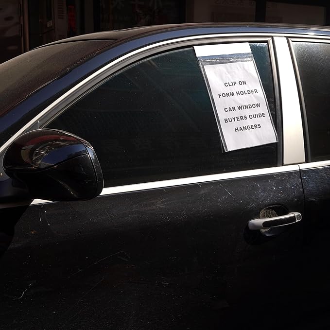 50 Pack Clip on Form Holder 50 Pack, PVC Buyers Guide Holder 9" x 13" Clear Plastic Pouch, Document Holders Window Hangers for Car Dealership