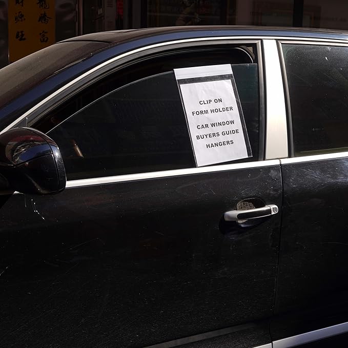 50 Pack Eco-Friendly OPP Window Hangers 9"x13" - Recyclable Car Dealership Document Holders, Lightweight Clip-On Sleeves for Buyer Guides, Menus & Promo Flyers