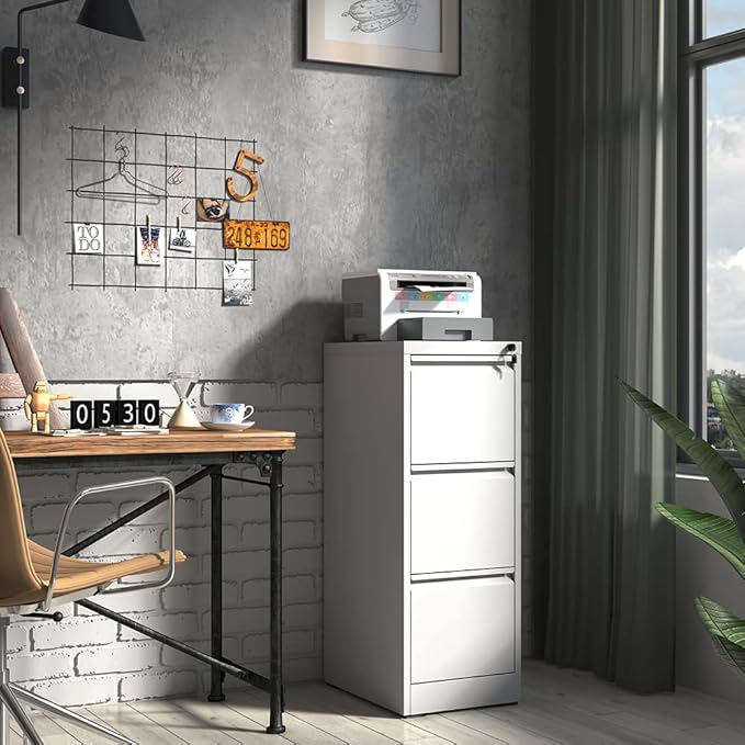 3 Drawer File Cabinet with Lock,Metal Filing Cabinets for Home Office,Steel Vertical File Cabinet,Heavy Duty Metal Storage Cabinet for A4/Letter/Legal Size Files,Assembly Required