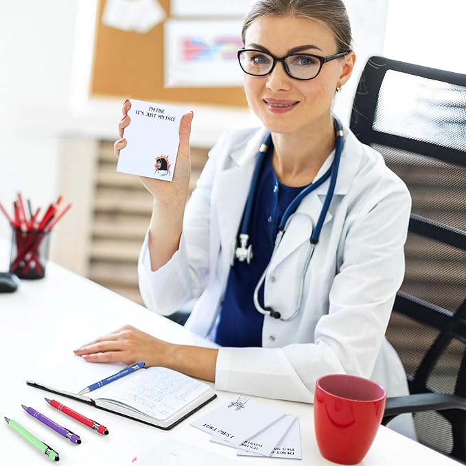 Geyee 24 Pcs Amusing Nurse Sticky Notes with Funny Pens Fun Notepads for Adults Coworkers Nurse 3 x 4 Inch to Do List Notepads with Sayings Pen for Lab Week Gifts Teacher Office Supplies