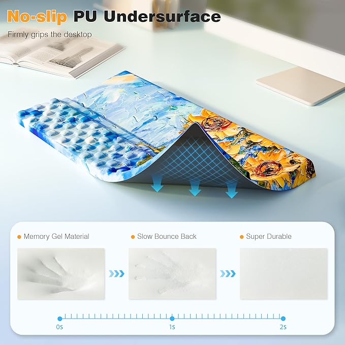 - Sticky PU base grips your desk like glue so your keyboard pad stays put during intense work sessions or gaming marathons. The silky-smooth top layer feels crazy comfy against your skin - like your hand's chilling on a cloud while you use it. Perfect for sweaty-palmed coders, precision-obsessed gamers and other people who use computers for long periods of time.