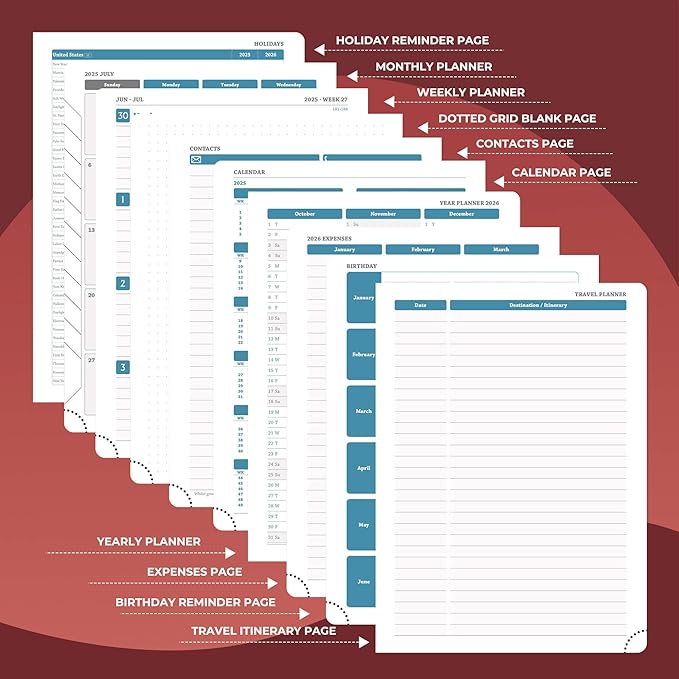 - Universal Design Planner: Suitable for a variety of people and scenarios. Professionals manage project progress, meeting arrangements and goals; student planner 2025-2026 courses, exams and extracurricular activities; home users arrange travel, activitie