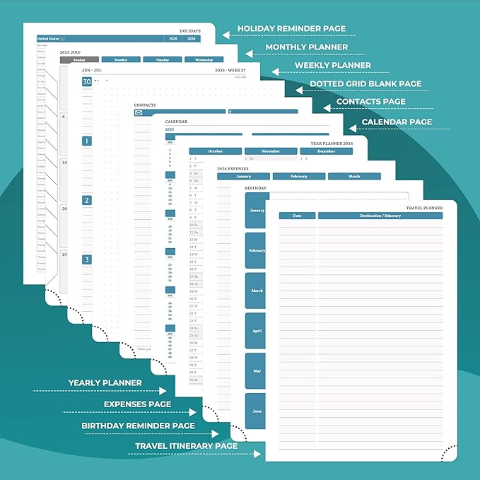 - Universal Design Planner: Suitable for a variety of people and scenarios. Professionals manage project progress, meeting arrangements and goals; student planner 2025-2026 courses, exams and extracurricular activities; home users arrange travel, activitie