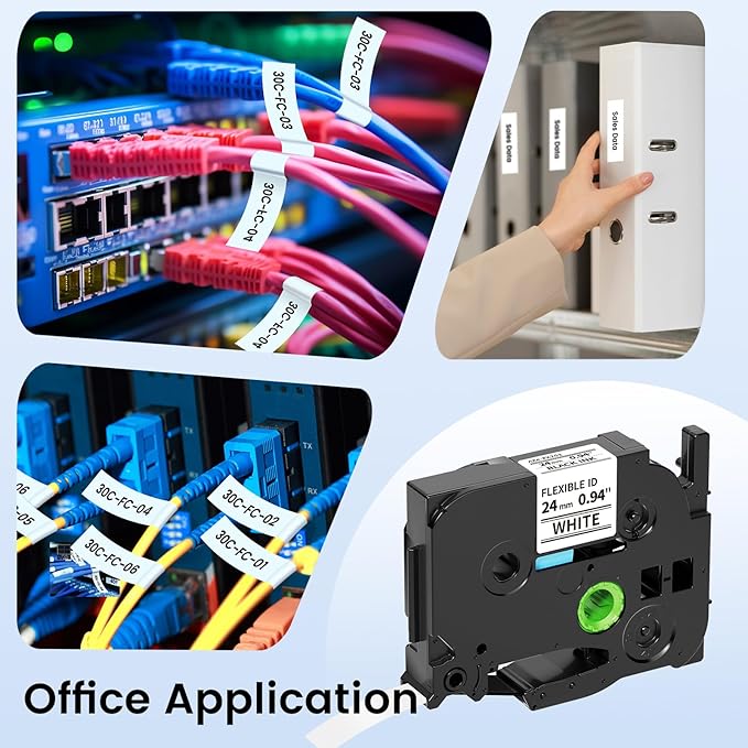 Flexible-ID TZe-FX251 Label Tape 24mm Compatible with Brother P-touch Flexible Label TZeFX251 FX251 1 inch, Suited for Wire Wrapping and Frlagging for PTE560TVP PTD600 PTP710BT Label Maker, 4pk