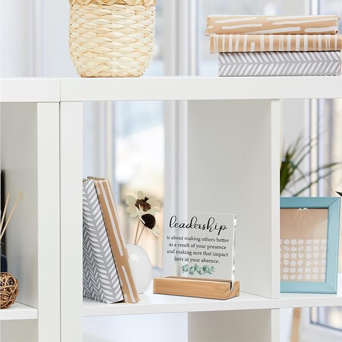 Leadership Gifts Office Decor Acrylic Sign with Wood Stand, Appreciation Gifts for Leader Boss Mentor Bedroom Living Room Desk Cubicle Table Shelf Decor, Boss Manager Gifts for Women Men