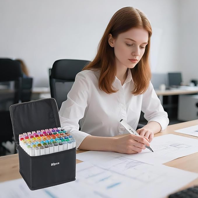 - Portability - You'll receive marker x80 + carrying bag x1, for easy transport and storage. To prevent ink leakage(Water 57% + Glycerol 20%), avoid leaving the tips on paper for too long or use an extra sheet behind