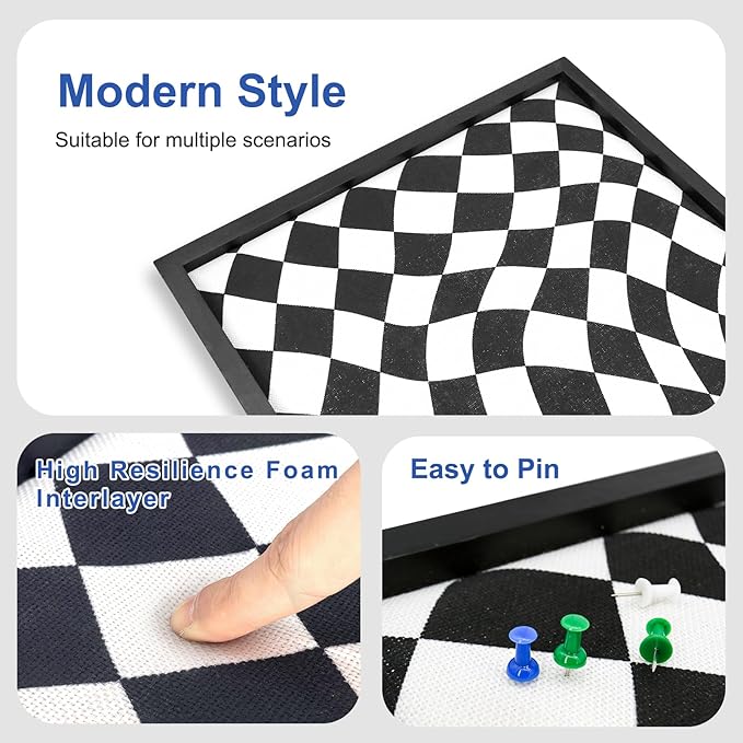 - 【Chic Chessboard-Inspired Design】: This black-and-white checkered 20x20 Inch Square linen bulletin board is more than just a decor piece—it's a symbol of strategy, balance, and thoughtful decision-making. Drawing inspiration from chess, the message board design reflects the interplay of opposing forces, creating harmony and focus