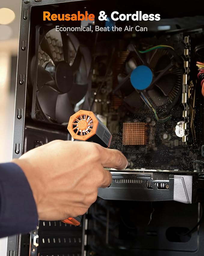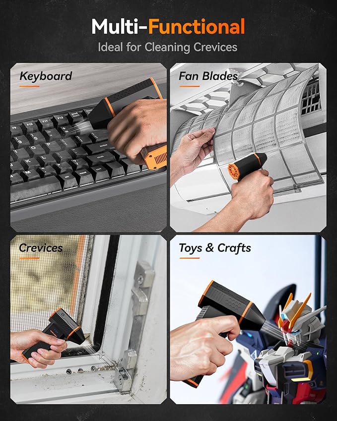 - Portable and Lightweight: Weighing only 0.45 lb, this compact air duster is easy to carry. The included lanyard ensures convenient use both indoors and outdoors.