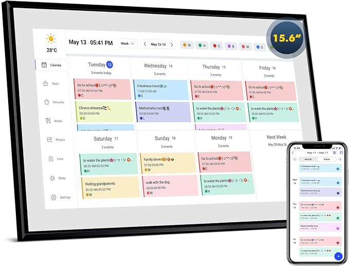 - ❤Seamless Scheduling: Smart digital calendar, effortlessly create and manage events, appointments, and reminders. with just a few clicks. Our 15.6" Full HD touchscreen intuitive interface makes scheduling a breeze, whether it’s a crucial meeting or a family gathering. The perfect gift for mom who keeps everyone organized.