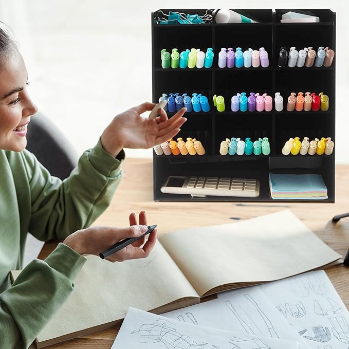 - Space saving design: Our acrylic vertical marker organizer is cleverly designed with an inclined compartment structure, which increases the use space and effectively saves space; There are 13 compartments in total, which can hold about 150 markers, which can be easily sorted, classified and meet various storage needs