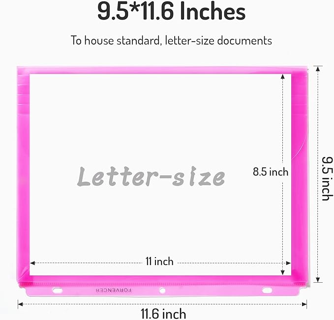- Extra 4ร Large Capacity: This 9.5" x 11.6" poly envelope features a 1.26" expandable gusset that holds up to 200 sheets - offering 4 times the storage of regular folders - while perfectly fitting letter-size documents (8.5" x 11"). Great for storing documents, stationery, charts, invoices, accessories, home supplies, photos, and more.