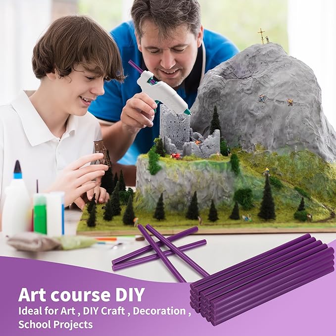 - Value Pack - 20 pcs Purple hot melt glue Sticks Full Size, 11mm/0.43 inch diameter and 200mm/8 inch glue sticks tool, compatible with most glue guns on the market, Long hot glue sticks, No need to change glue sticks Frequently.