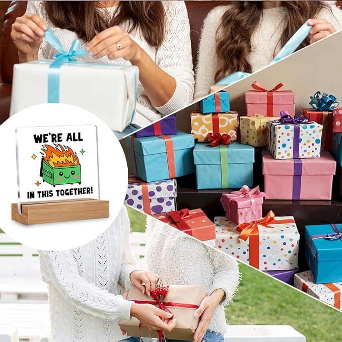 Dumpster Fire Desk Accessories, Funny Office Gifts for Coworkers Friends, Employee Appreciation Gifts, We're All in This Together Desk Dumpster Acrylic Signs Decorative 4 × 4 Inches