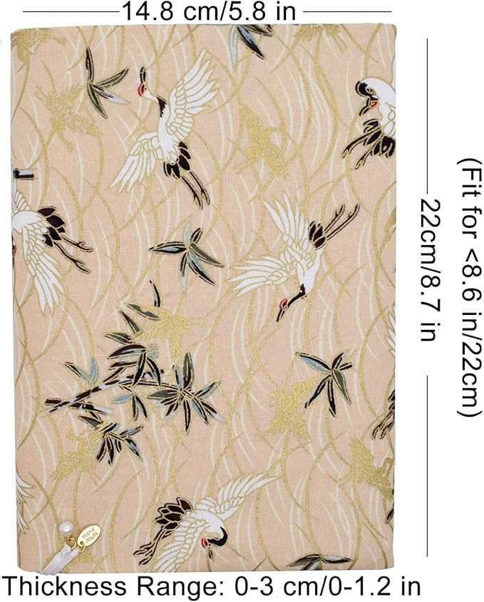 BLBMH Book Covers for Paperbacks Fit for 5.5x8.5 inch Book Bible Adjustable Book Sleeve Cover for Women Over 15 Soft Cloth Protector for Bible Novels - Crane Beige