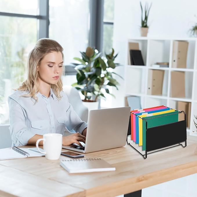- High-Quality Construction:Made with sturdy,tear-resistant material,these hanging file folders are built for long-term use. The strong metal rods provide smooth sliding inside file cabinets, ensuring that your documents stay organized and accessible.