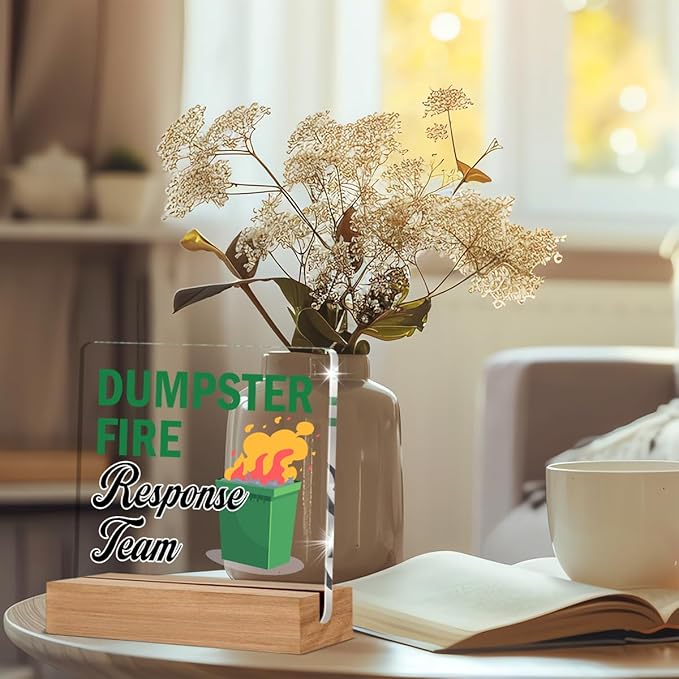 Dumpster Fire Desk Accessories, Funny Office Gifts for Women Men Coworkers, Employee Appreciation Gifts, Dumpster Fire Response Team Acrylic Plaque Desk Signs Decor 4 × 4 Inches