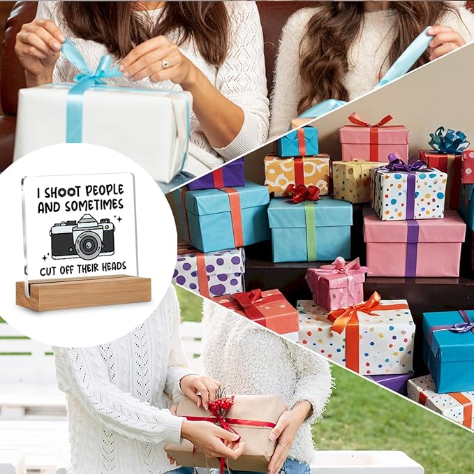 Funny Photographer Gifts for Women Men, Cool Photography Gifts for Photographers, Camera Lens Acrylic Plaque Gift, I Shoot People And Sometimes Cut Off Their Heads Desk Signs Decor 4 × 4 Inches