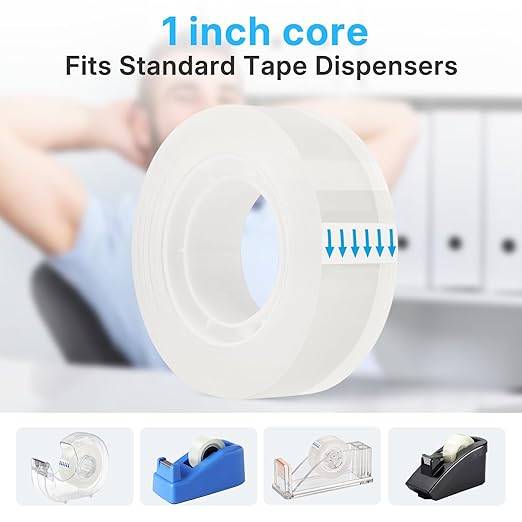 - Tape Refill: 1 inch core, fits standard tape dispensers, easy to cut and use