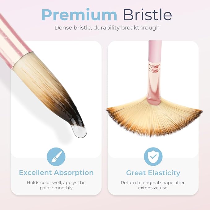 - Premium Nylon Bristles – Smooth Flow & Long-Lasting Shape. Crafted with high-grade nylon, these bristles provide excellent paint retention and consistent flow. Easy to rinse, reshape, and reuse—perfect for blending, layering, and fine strokes without fraying or shedding