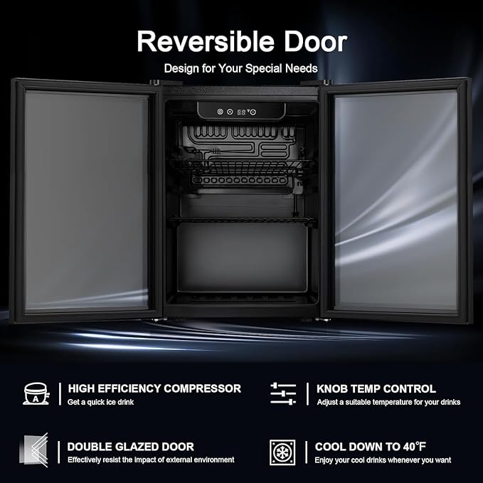 - Intelligent Control:This Beverage Refrigerator has digital Thermostatic controls to adjust the temperature between 40°F-61°F with an easy-to-use digital display. The coolers for home feature a special compressor technology that keeps the temperature constant regardless of the outer oscillations.