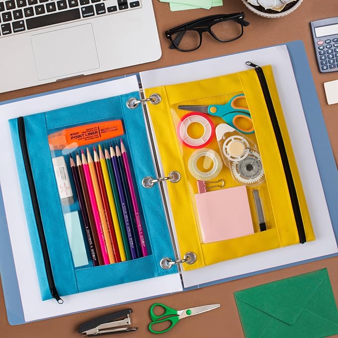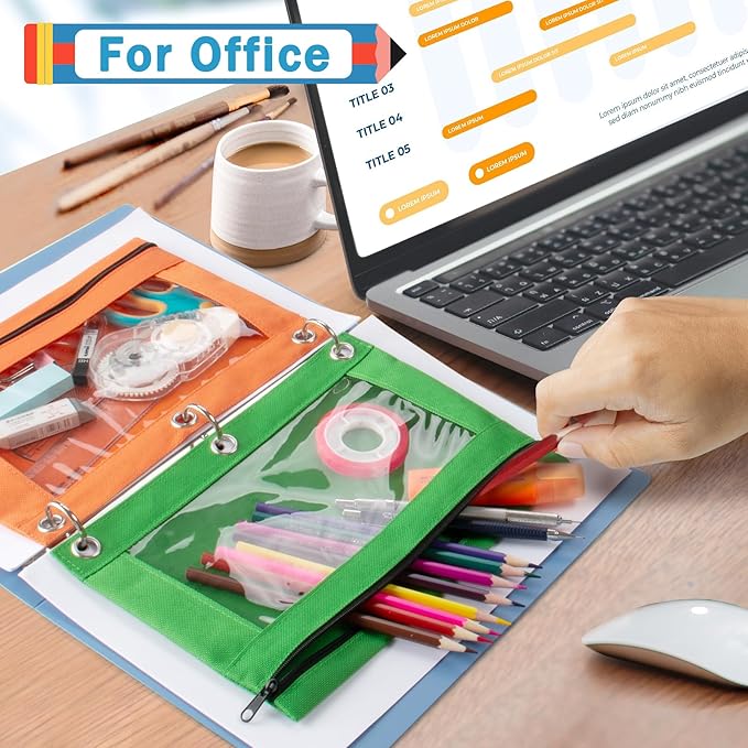 - 72 Pack 3 Ring Binder Pencil Pouches: Precisely calibrated 3-hole binder compatibility (4.3" spacing) ensures seamless insertion into standard binders. Include 6 colors (purple, green, yellow, orange, red, blue), and 12 pcs per color. Perfect for events requiring color-coded organization.