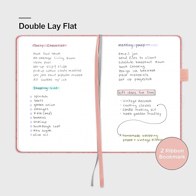 - 180° LAY-FLAT DESIGN: The lay-flat design allows for easy writing and ensures that you can utilize every page efficiently. Journaling, note-taking and planning has never been easier! 2 Bookmarks to help you find important content faster