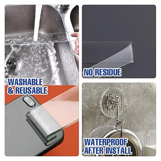 - 【Daily Essentials, Damage-Free:】Say goodbye to nails, screws, and traditional command strips that can damage your walls and surfaces. Our heavy-duty tape provides a strong, secure, and residue-free alternative. It’s easy to cut, bend, and shape to fit different surfaces and objects, blending seamlessly into your space with its clear, discreet design.