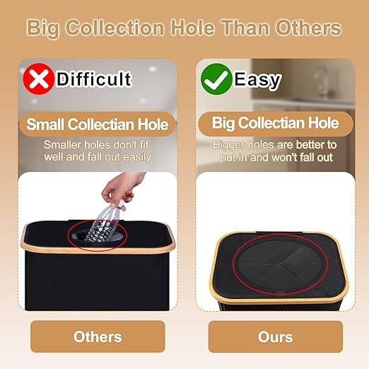 - 【Easy to install】 You only need to install the support rods in the 4 corners and fix them under the bamboo basket to easily install the bottle collector. You can easily assemble or fold this recycle bin. At the same time, the lid can prevent odors, keep your room clean and tidy, and provide more storage space.