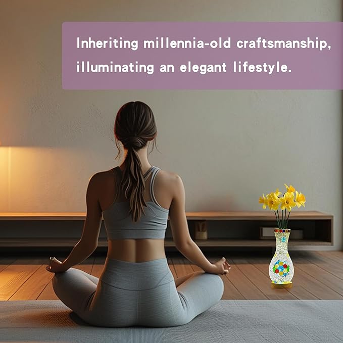 Handmade Turkish Style Mosaic Table Lamp with USB Power - Colorful Glass Vase Light for Bedroom or Living Room