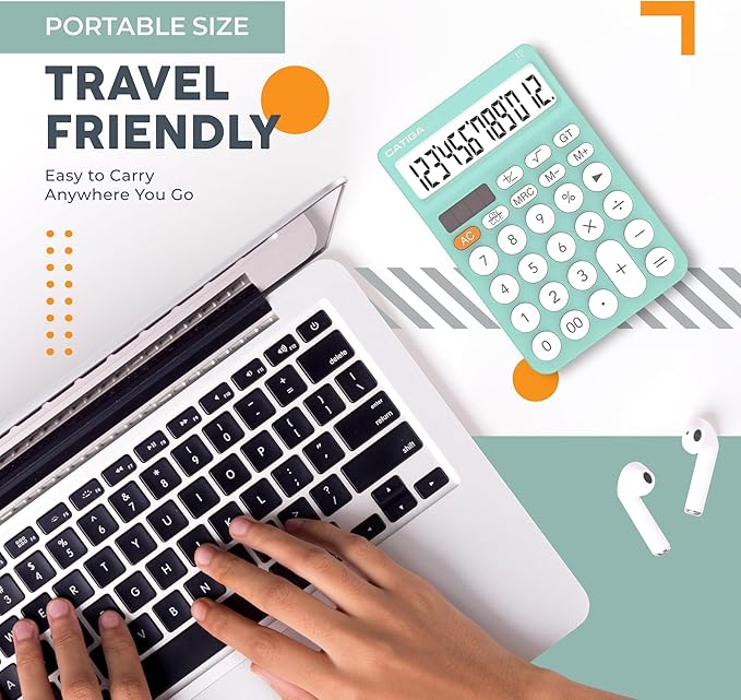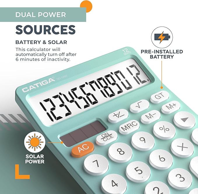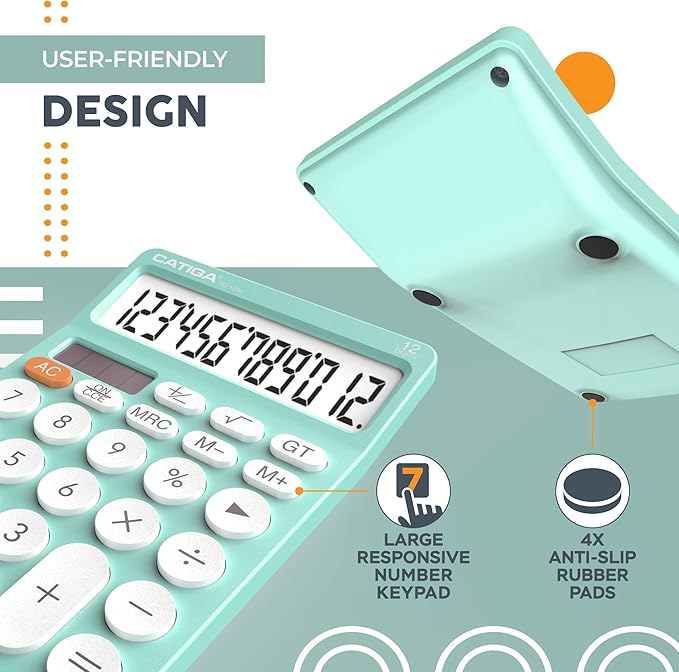 - 【Essential Cute Calculator for School and Study】The CATIGA 12-digit desk calculator is a cute calculator designed for students and daily users. Its lightweight, colorful build makes math tasks fun and easy. Perfect as a desktop calculator for school, home, or office, it delivers reliable performance with vibrant style.