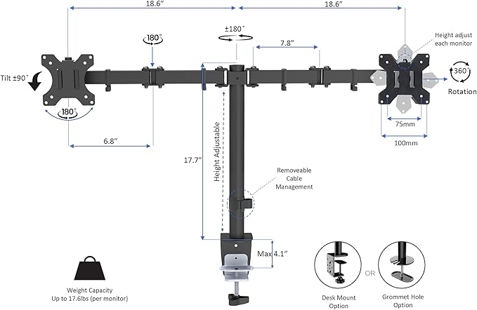 - Swift and stable lifting motion - sturdy metal frame paired with strong dual piston assist and easy-grip side handles can raise or lower up to 35 pounds with smooth continuous height adjustment from 5" to 17" above tabletop.