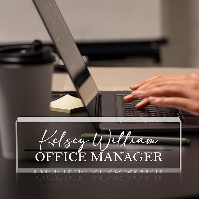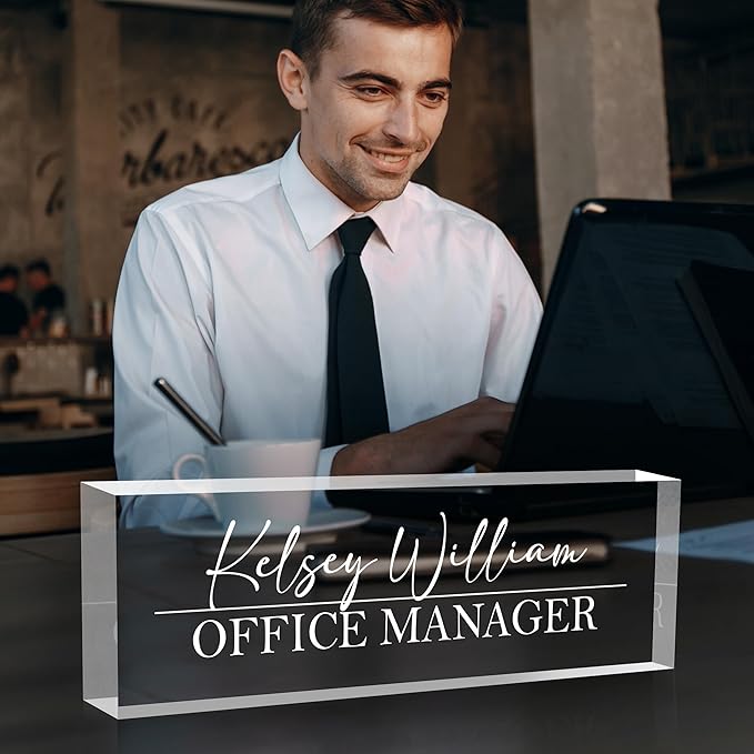 Personalized Name Plate for Desks, Custom Desk Name Plates, Acrylic Name Plate Office Desk Accessories, Personalized Office Gifts for Coworkers Teachers, Employee Appreciation Gifts (Engraved2)