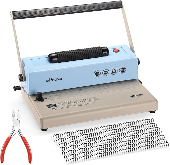 - Electric Coil Binding – OFFNOVA spiral binding machine features an electric coil inserter that effortlessly winds and unwinds coils, saving time and effort. Need to update your documents? Easily remove and replace pages for flexible, personalized binding—perfect for office reports, school projects, and professional presentations.