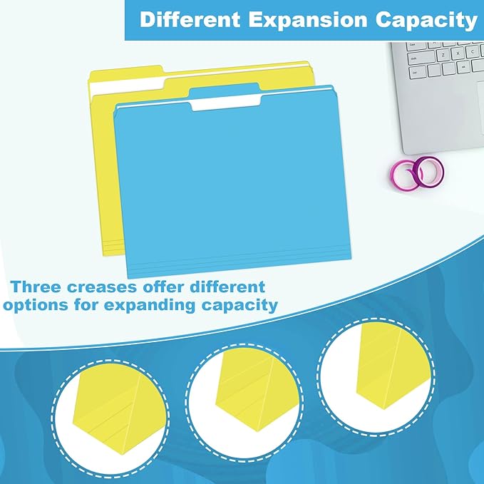 - MULTIPUERPOSE: Our 1/3 cut tab file folders can be used in file cabinets, drawers, school, office, and desk organizer, ect.