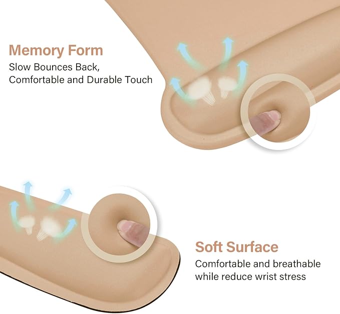 - Ergonomically designed with breathable/durable neoprene cloth and raised memory foam. Efficient for easy typing & pain relief. Offers soft support to relieve pressure and pain of your wrist, keep your wrist in a natural and comfortable state.