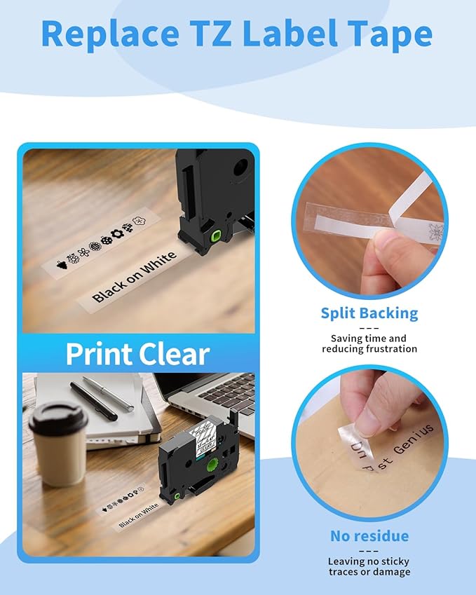 - Strong adhesion that lasts – Designed for durability, these replace for p touch label tape resist water/extreme temperature/oil/abrasion/fading and peeling, sticking reliably on various surfaces from kitchen containers to office binders, ensuring your labels last as long as you need them