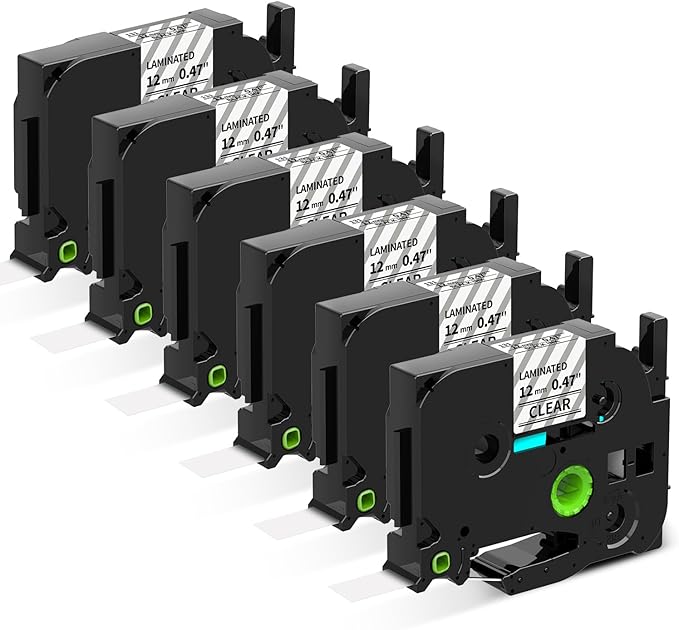 Colorty Clear Label Maker Tape TZe-131 Compatible with Brother P-Touch Label Tape TZ TZe 12mm 0.47 Laminated 1/2" Black on Clear TZe131 for PT-D220 D210 H110 1180 1280 1890 Tape Refills, 6-Pack
