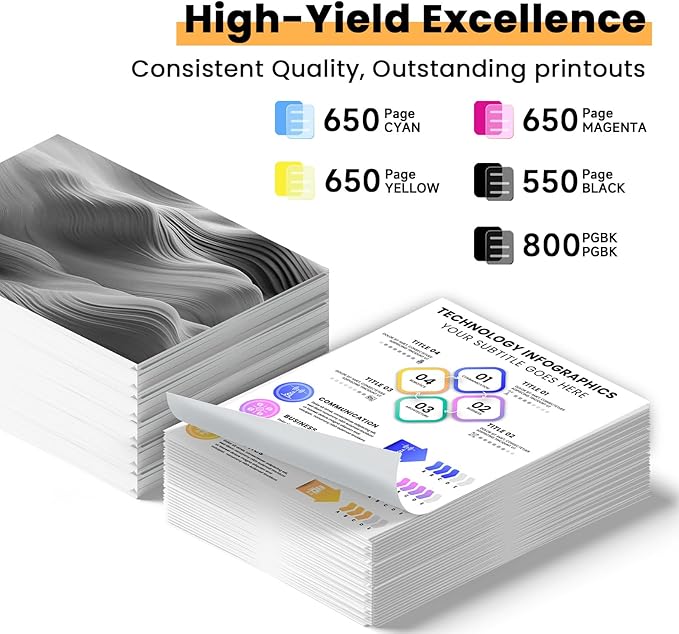 - High Page Yield: Delivers up to 800 pages for Photo Black, 550 pages for Black, and 650 pages for Color ink cartridges (based on 5% coverage on A4/Letter paper). Ideal for cost-effective, long-lasting printing