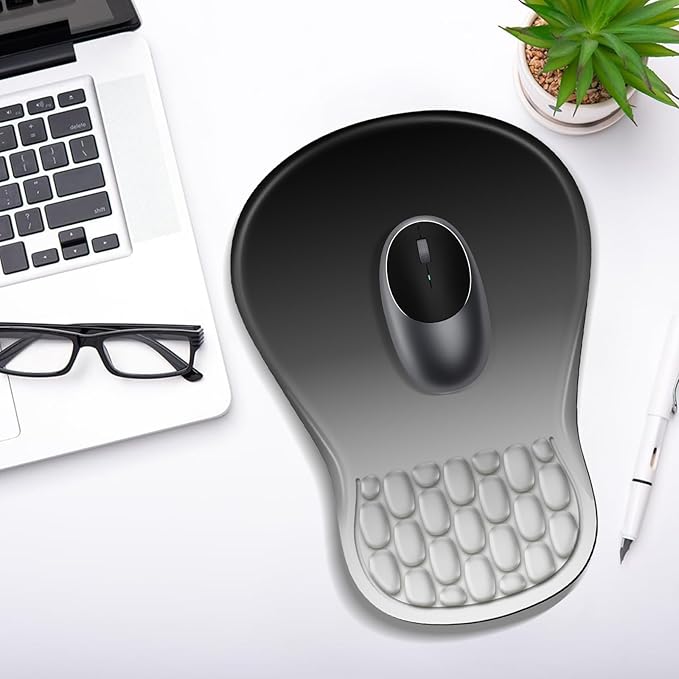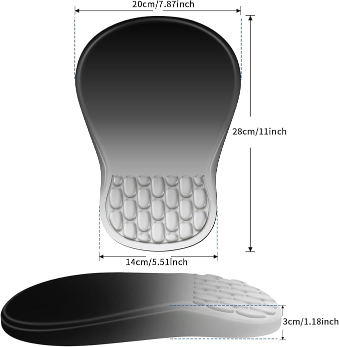 - Ergonomic Mouse Pad: The innovative ergonomic 8-degree slope and massage bump design perfectly support the wrist and palm. Massage bump design can effectively relieve wrist pain and fatigue, improve carpal tunnel syndrome (CTS), strengthen the air circulation between wrist and mouse pad, prevent sweating, and keep your wrist in the most comfortable state.It's your best choice of desk mouse pads.
