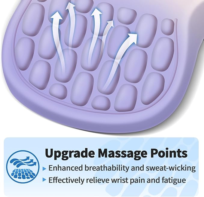 - Ergonomic Mouse Pad: The innovative ergonomic 8-degree slope and massage bump design perfectly support the wrist and palm. Massage bump design can effectively relieve wrist pain and fatigue, improve carpal tunnel syndrome (CTS), strengthen the air circulation between wrist and mouse pad, prevent sweating, and keep your wrist in the most comfortable state.It's your best choice of desk mouse pads.