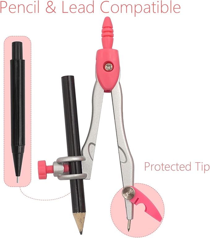 - Includes everything needed for basic geometry: The compasses are tight and don't shift while making an arc or circle, for geometry. The set include extra refills for compass. If the compass being a little loose, just tighten the screws and it will fix.