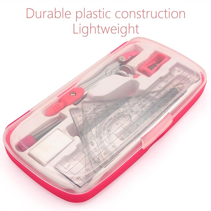 - Starter geometry set for math class: it has the geometry parts that boys and girls need for basic math learning and all the selected geometry pieces come in a compact portable container and stay organized and together for drawing circles straight lines, etc.