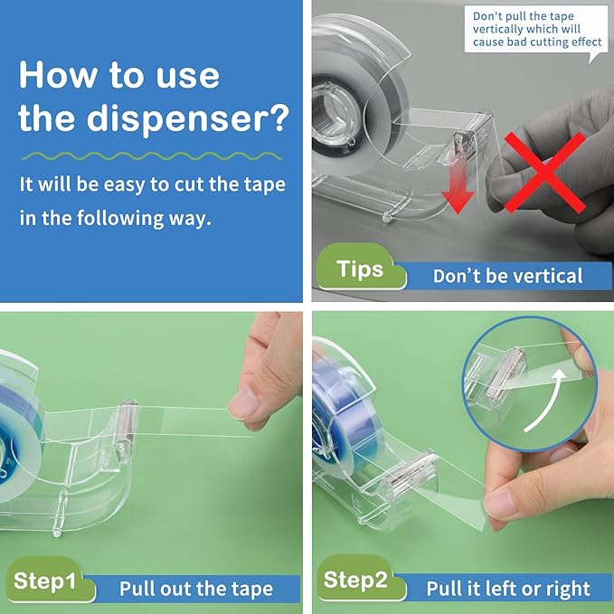- Special Design: The tape with clear dispenser makes you timely replenishment. Clear tape dispenser is suitable for standard size tape, which is convenient for you to replace the tape