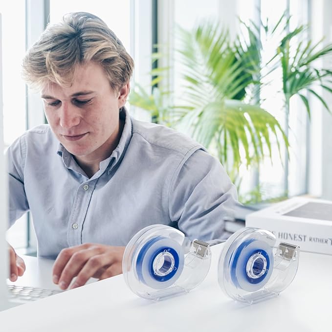 - Transparent Dispenser: Features a long-lasting shape cutting blade and a solid shell that resists damage and corrosion. Allows for quick and easy application of tape