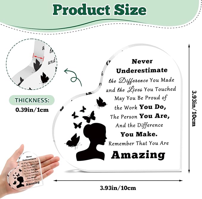 - Inspirational Acrylic Plaque Gifts - It is meaningful and memorable Acrylic Plaque gift for women, friend, colleague, teachers. It can be Birthday gift, thank you gift, office gift, couple gift, teacher gift, valentines day gifts, office gifts, Christmas gifts or coworker leaving, Retirement, new job, farewell, goodbye gifts.