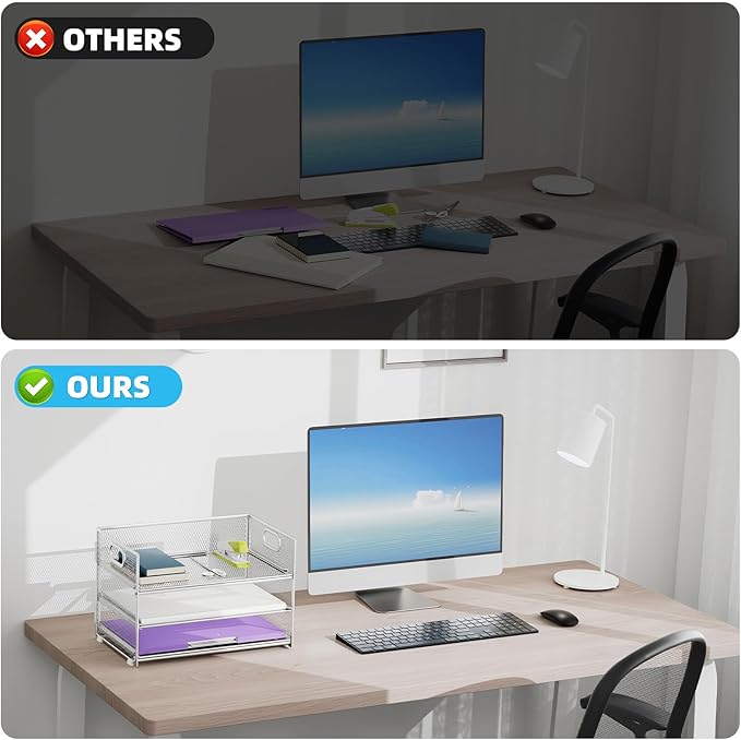 - 【PREMIUM QUALITY】The mesh desktop file organizer is made of lightweight durable metal mesh and reinforced with a solid steel frame that makes it have long-lasting strength and reliable performance.